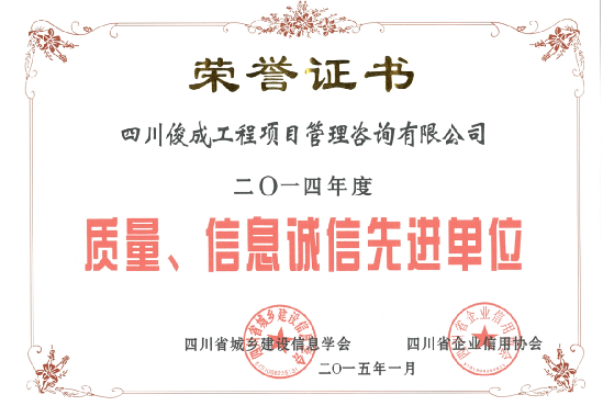 俊成建昱工程集團有限公司始建于二零零九年二月,中凱俊成建設咨詢有限公司為旗下子公司,公司分別位于四川省成都市成華區(qū)、德陽市凱州新城,公司注冊資本5000萬元人民幣。中凱俊成通過了ISO9001質量管理體系、ISO14001環(huán)境管理體系、ISO45001職業(yè)健康安全管理體系認證。 公司目前具有工程監(jiān)理綜合資質,工程造價咨詢甲級資質,工程招標代理甲級資質,冶金行業(yè)(冶金礦山工程) 甲級設計.....[詳情]